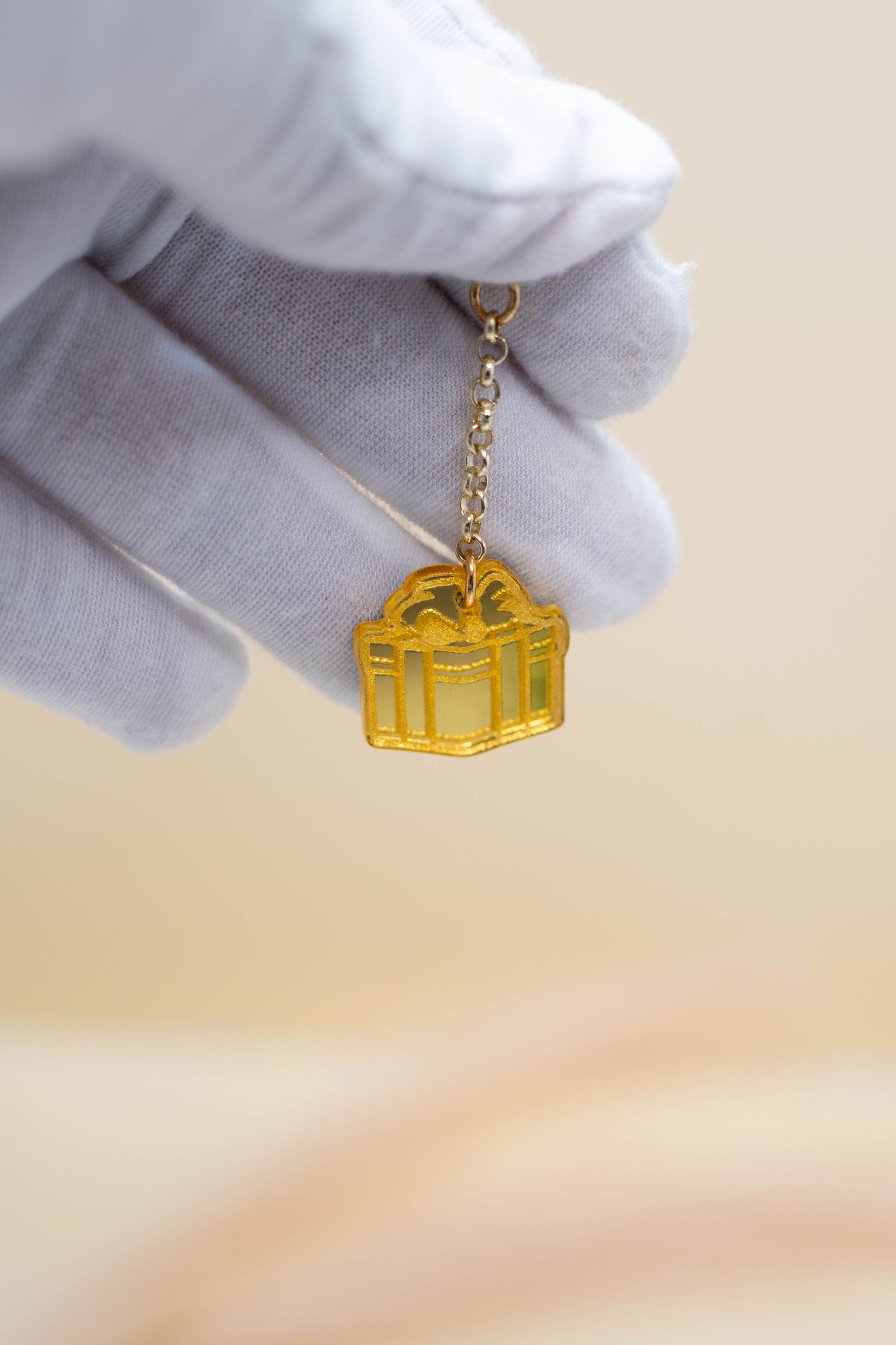 The perfect sparkle for every celebration — festive golden gift box earrings that shimmer with cheer.
