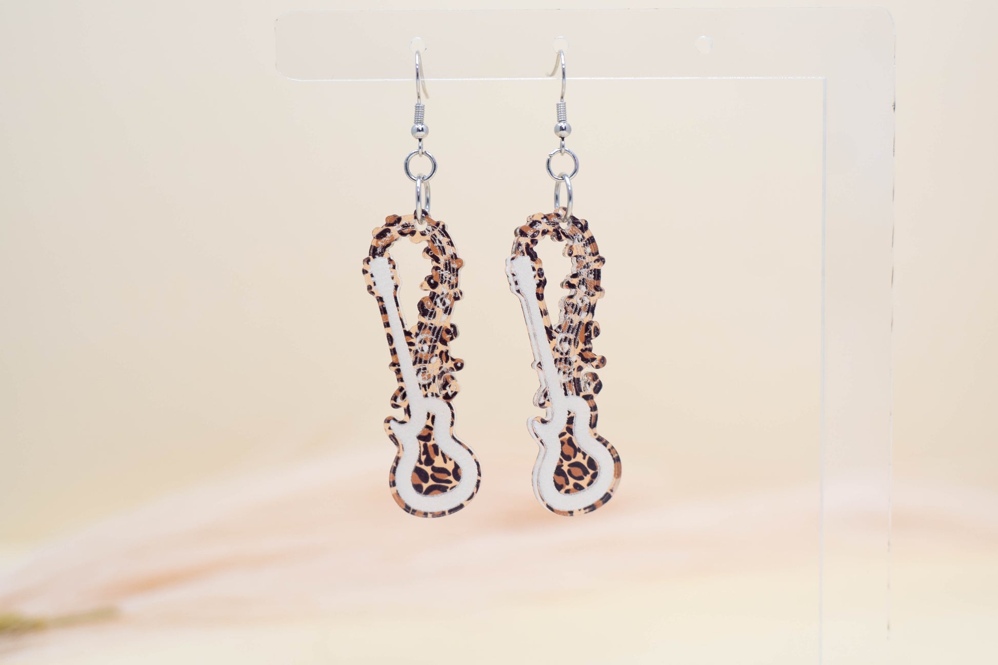 Wild style meets rhythm — leopard print guitar earrings that rock every outfit.